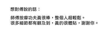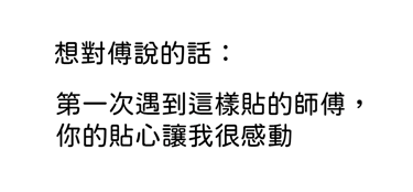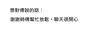 我是一個比較慢熟的人,會先聽你說今天的狀態,再調整節奏。如果你只想放鬆、不想說話,也沒問題。